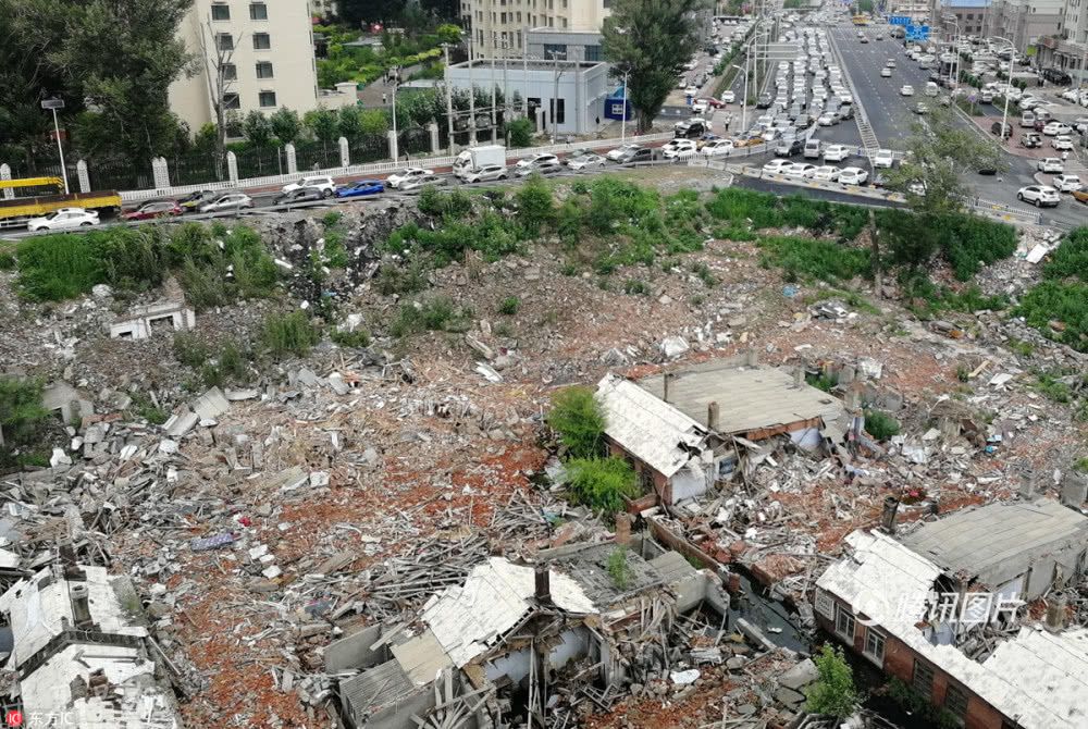 7月5日,黑龙江哈尔滨哈西新区的和谐大道至群力新区的兴江路新道路通车半年多了,由于被城乡路附近的一栋老居民楼和楼前的棚户区所阻挡,道路被迫绕出了两个完全对称的弯道。