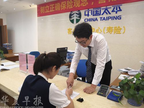 图为太平人寿广西分公司工作人员为客户服务。