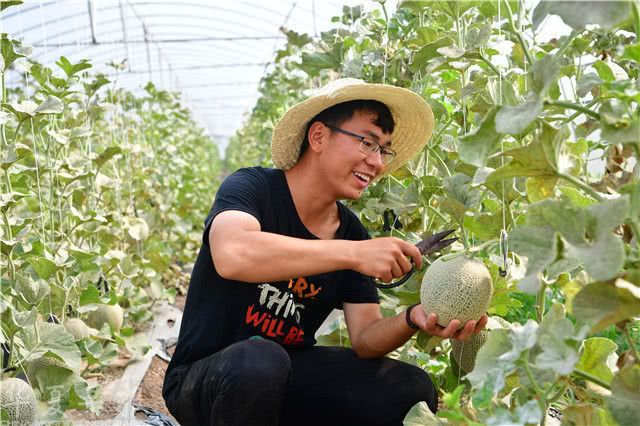 在河南兰考张庄村,一位年轻的“新农人”在大棚内采摘兰考蜜瓜(6月20日摄)。新华社记者 冯大鹏 摄