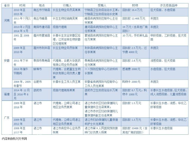 澎湃新闻记者梳理长春长生等公司卷入的这12起贿赂案发现,从疫苗企业“收好处”的基层防疫、疾控部门人员,往往会收取多家公司的“好处费”。