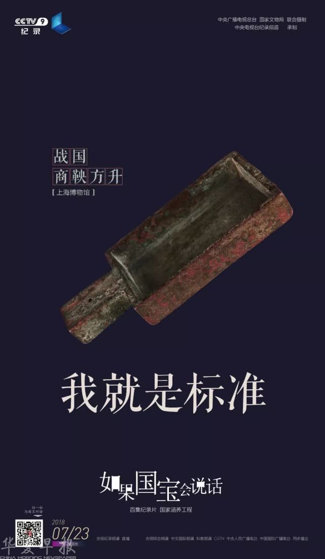升,既是容量单位,又是测量粮食的器具。标准、统一、天下,这些关乎中国历史走向的决定性瞬间,就铭刻在它的身上。统一的方升,意味着统一的法度,生活在辽阔土地上的华夏先民,才会对一个泱泱大国有了统一的认识。一个国家的升,