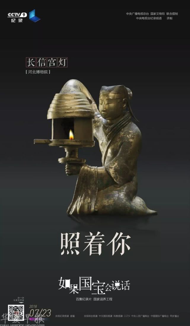 一位西汉宫廷女子,眉眼细长,脸型圆润,头上佩戴巾帼,身穿曲裾深衣,跣足而坐。她为灯而生,两手持握灯盏,向前投射光亮,身体是烟尘的容器。两千余年,她未曾挪动一步,却从西汉启程,带来遥远的一束光明。看见这盏灯——