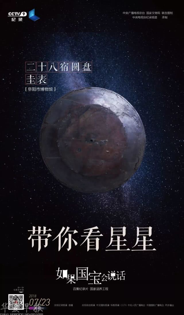 二十八星宿如同撒在天空的坐标,不均匀划分周天365度。可测量天体的赤道经度,记录日、月、五大行星的位置变化。漆木圆盘边沿,刻有星宿名称和距度。另一圆盘,盘面标示北斗七星,边沿一圈365个小孔。两盘正中钻同心圆孔。日复一日,先民仰头观天,低头思量。木已腐朽,漆皮残存。时空——