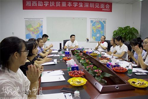 在深圳市德达康健股份有限公司,学生们参加了湘西助学扶贫重本学生见面会。深圳狮子会社区服务委员会主席孙传湘代表深圳狮子会,热烈欢迎武冈同学们的到来,并简单介绍了同学们在深圳的行程和安排。希望同学们能够在短暂的游学时间内,好好感受和体验一下深圳的改革开放及创新,并希望这些体验,对他们即将到来的大学生活,能够起到一定帮助。