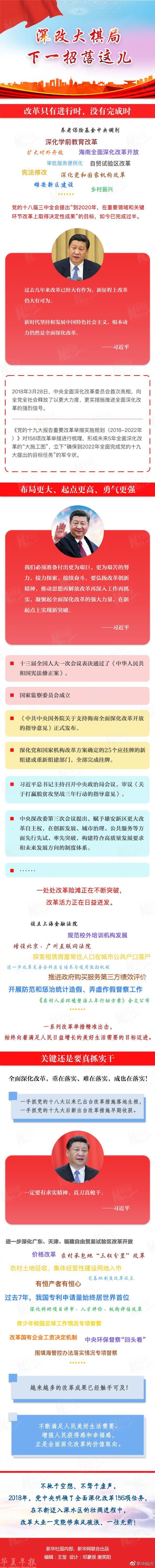 更谋长远的改革大布局——表决通过《中华人民共和国宪法修正案》,深化党和国家机构改革,成立国家监察委员会……全面深化改革向着“完善和发展中国特色社会主义制度,推进国家治理体系和治理能力现代化”的总目标不断奋进。