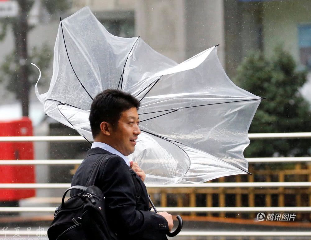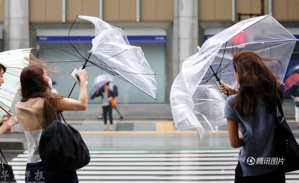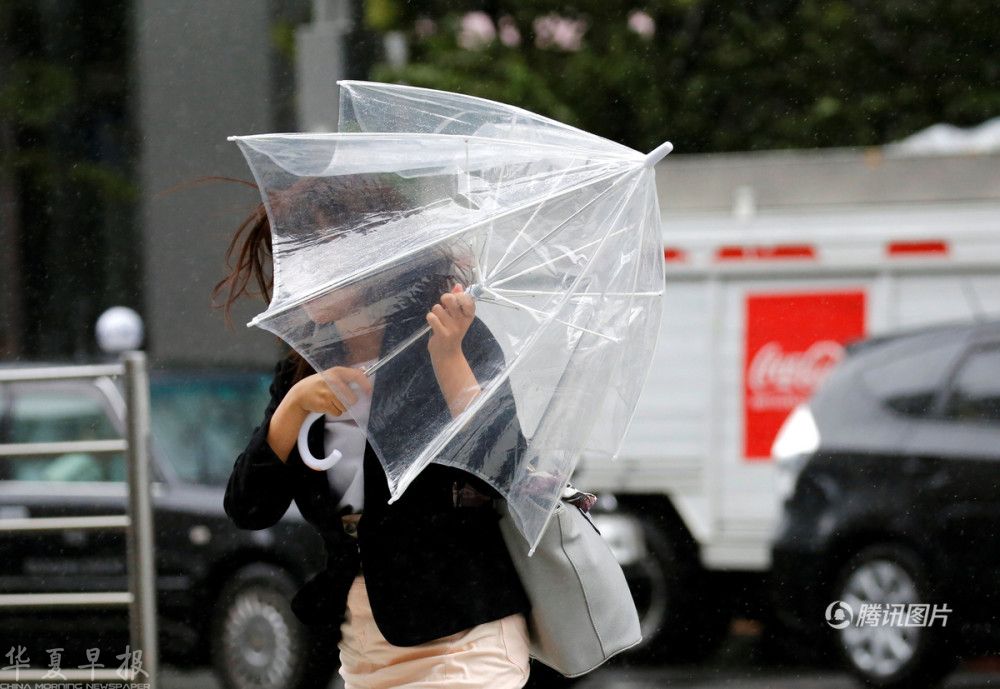 8月9日,强台风“珊珊”在日本东京附近登陆,市区出现狂风暴雨,上班途中,不少行人的伞被吹折断。