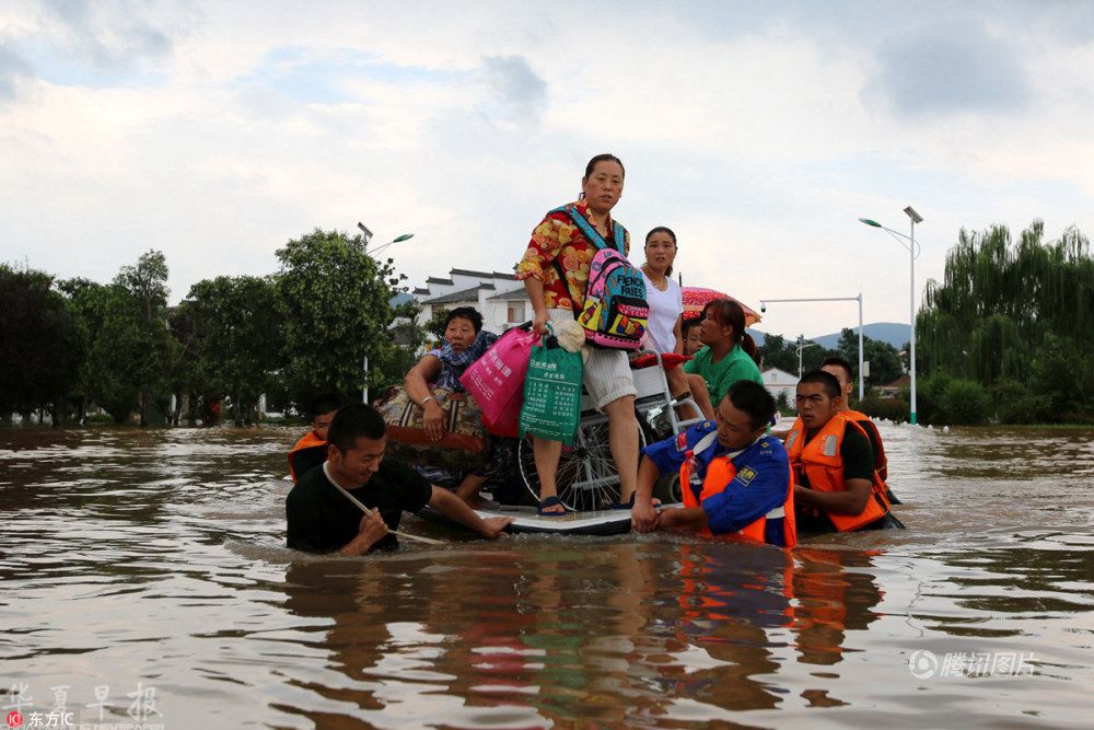 2018年8月18日,受第18号台风“温比亚”(热带风暴级)影响,安徽省淮北市普降暴雨,累计平均降水量达281.9毫米,创下淮北市气象记录历史最高值。灾民扎堆在“船”上,被紧急转移。