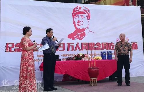 湖湘文化基金会、中国韶山网、中国义工助学万人行组委会、德行天下中央媒体联盟、毛家饭店、老街鱼嘴开始倡导用最朴实的方式“万人同吃福寿面”来追思缅怀毛主席,期望这种毛体民俗文化活动能接地气,深入百姓生活,更好地传承红色文化,不忘初心,让红色基因代代相传。