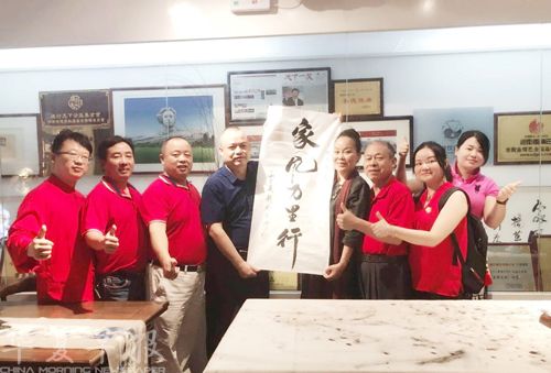 湖湘文化基金会秘书长刘泽宇(左四)代表纪念毛主席民俗文化活动组委会与德行天下公益基金会核心发起人刘兰英(右四)联合开展世界家风万里行活动。