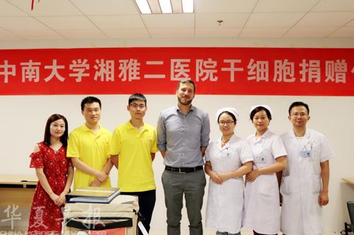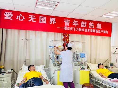 华夏早报讯(记者 蒋颖 通讯员 吴泽芳) 9月10日上午,中南大学湘雅二医院血液内科干细胞采集室里,来自湖南长沙的张一(化名)在病床上静静地躺着,他不时捏一下手中的橡皮球,红黄色的造血干细胞混悬液经由细长导管从体内流向血细胞分离机,经提取缓缓流入收集袋,历经5个多小时的长久等待,从他体内采集的273ml造血干细胞将为瑞典的血液肿瘤患者送去的“救命种子”,完成一场“爱心无国界”的接力。