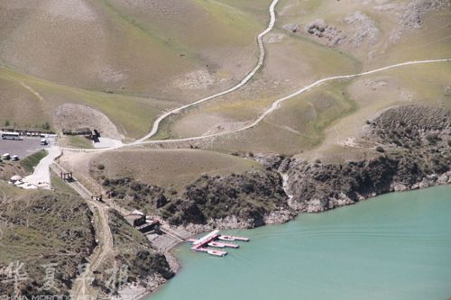新疆喀拉峻湖俯拍图。