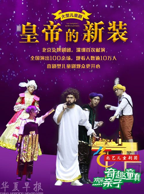 华夏早报讯(记者 刘大华)9月23日,大型儿童剧《皇帝的新装》将在深圳献演,该剧由北京金牌剧团北艺儿童剧团出演,已在全国演出100余场,此次在深圳蛇口风华大剧院上演,是深圳首次献演。