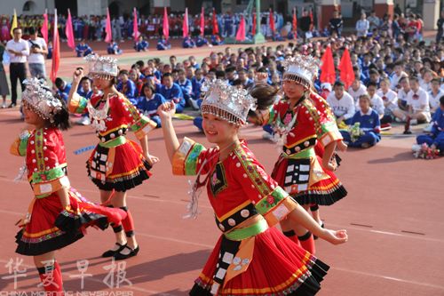 本届田径运动会的主题为“中华民族一家亲,同心共筑中国梦”。各年级方阵队次第入场,入场式中,列队班级分别呈现出汉族、壮族、满族、回族、苗族、维吾尔族、土家族、蒙古族、藏族、朝鲜族、傣族等十余个民族的民族特色:有的演唱民族歌曲,有的表演民族舞蹈,有的融朗诵、武术、舞蹈于一体,有的将民族服饰与现代摇滚音乐相融合,碰撞独特的艺术效果,赢得场上掌声雷动……一枝独秀不是春,百花齐放春满园。雅实小舞台上,学生们的表演还演绎出各民族独具特色的风情。