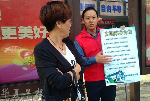 华夏早报讯(记者 刘大华 特约记者 尹建国 通讯员 伍常青 周宁安 )文明乘车,从我做起。9月29日,湖南省邵阳市道路运输管理处联合邵阳市人社局、邵阳市交通学校、邵阳市义工联,组织120多名志愿者在城区红旗路、西湖路、宝庆路等40个公交站台开展“文明乘车、从我做起”文明交通劝导志愿服务活动。倡导文明乘车,从细节入手,营造城市文明出行大氛围,传递着城市的善意和温度。