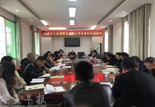 据了解,此次培训是红岩乡为学习推广“枫桥经验”,着力提升该乡人民调解员的法治思维和运用法治方式法治手段解决矛盾纠纷的能力素质而作出的重要举措。主要有三项内容:一是全面总结该乡上半年的人民调解工作,总结成绩,分析问题,提出改进方案;二是开展人民调解知识培训。结合上半年调处的矛盾纠纷案件,向人民调解员重点讲解依法调解山林土地纠纷、家庭纠纷、邻里纠纷、一般侵权纠纷等农村易发常见纠纷的调解技巧、方式方法及文书制作等;三是安排部署推进人民调解工作,要求乡、村两级人民调解组织和广大人民调解员要深入学习“枫桥经验”,进一步明确目标、振奋精神,切实加强矛盾纠纷的排查预防和依法化解工作,加强联动联调,切实做到小事不出村,大事不出乡,确保全乡社会和谐稳定,群众安居乐业。