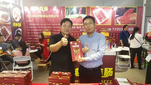华夏早报湖南长沙讯(特派记者 宋林)11月2日,第二十届中国中部(湖南)农业博览会进入第二天,连续数届参与农博会报道的本报记者在展会现场采访到了长沙本地参展商——老孙炸肠食品公司的创始人孙利明。