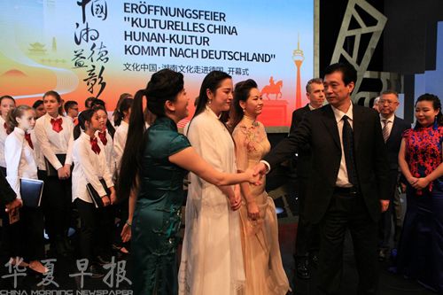 华夏早报讯(记者 刘大华 特约记者 尹建国 通讯员 杨坚 许小强)10月29日开始,为期四天的“文化中国·湖南文化走进德国”系列文化活动在德国杜塞尔多夫市拉开帷幕。独具魅力的湘绣、湘瓷、影视、湘书、文创、杂技等“湖南文化名片”,让德国民众领略湖南文化的精髓和魅力。“新生代时尚民歌小天后”刘元元一曲甜美的《美丽浏阳河》在杜塞尔多夫市CCD会议中心里余音绕梁,久久回响,现场的德国观众报以经久不息的热烈掌声。