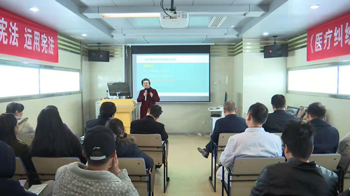 活动伊始,湖南省律师协会医疗法律事务专业委员会主任、资深律师杨美莲,长沙市公安局内保支队文保大队队长蒋辽原受邀从司法、公安维护社会秩序的角度,结合案例 ,现身说法。