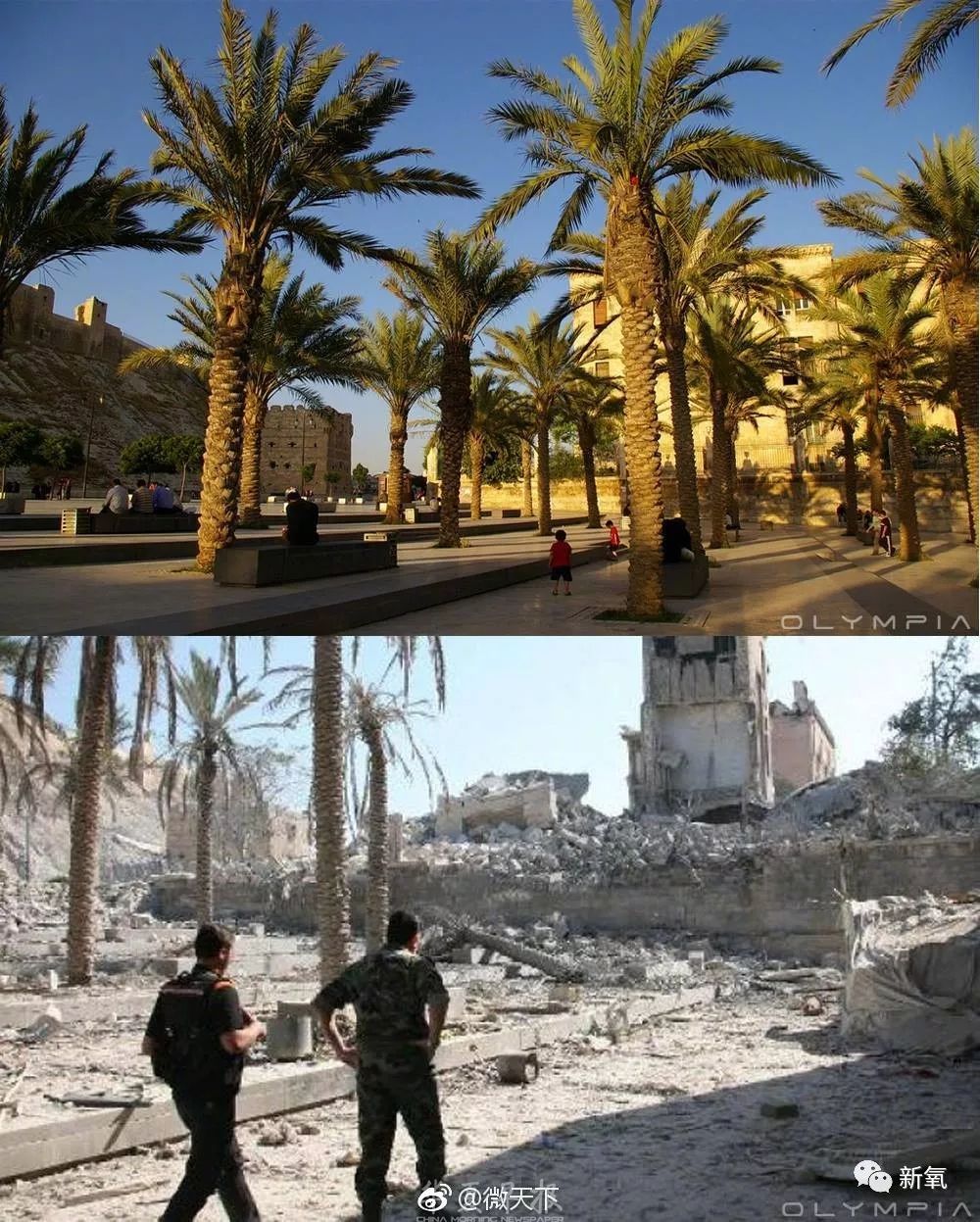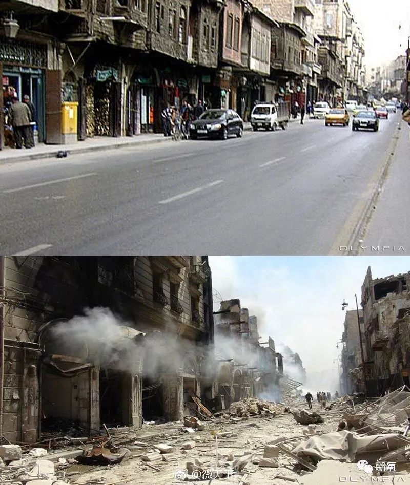 叙利亚战争前后的对比,这个城市已经满目疮痍。
