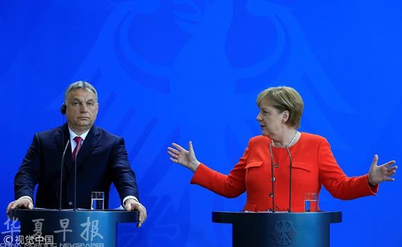 当地时间2018年7月5日,德国柏林,德国总理默克尔5日会见来访的匈牙利总理欧尔班,双方在难民问题上分歧严重,未达成任何妥协。(@视觉中国)