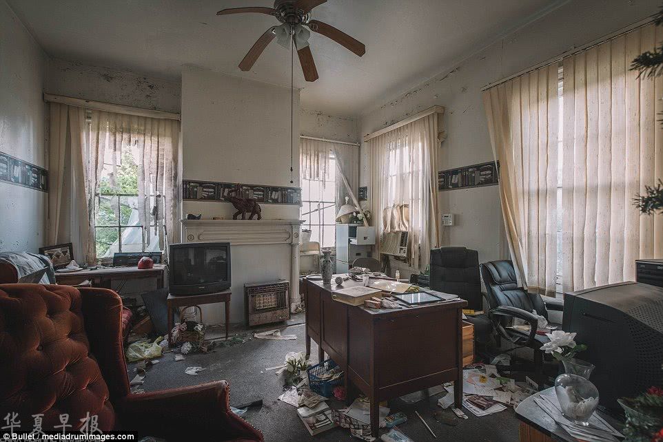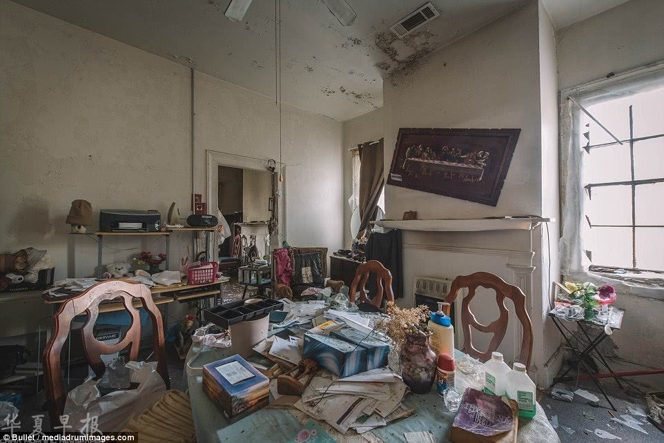 豪宅内很多物品都保留着当年主人离开的样子,不过也有迹象表明有流浪汉或者拾荒者闯入其中,造成了一定的破坏。