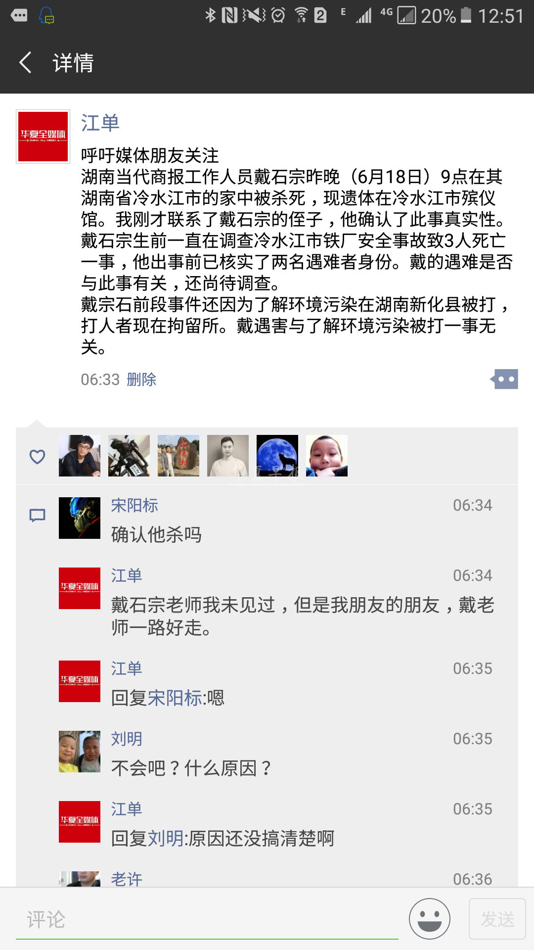 一、我获悉湖南媒体同仁遇害后,第一时间发布朋友圈,希望媒体跟进,目的是希望当地引起重视,公正处理,别不了了之。