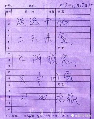 令民警难以理解的是,嫌疑人竟然留下了内容对仗工整,平仄押韵较好的字条:“误途于此,二天未食,江湖救急,只求回家,对此抱歉。”字条上还注明了盗窃的金额和时间。