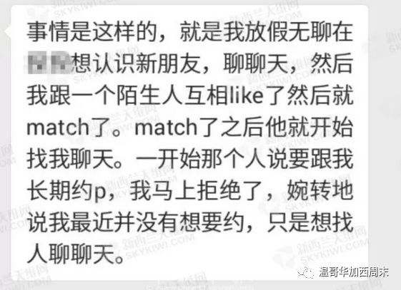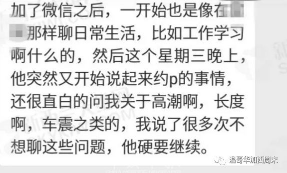 然后,就有好多温哥华的男生加她,跟她聊天,大部分人都是想约炮的。