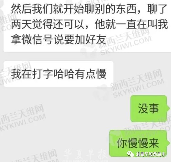 就这样聊了两天“别的东西”,小C觉得聊得“还可以”。这时,小J就不失时机地提出,交友软件上聊天速度慢,用起来不方便,希望加小C的微信号,在微信上继续聊天。小C一开始并不想加对方的微信号,但是架不住对方的央求,就同意了。