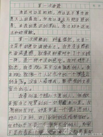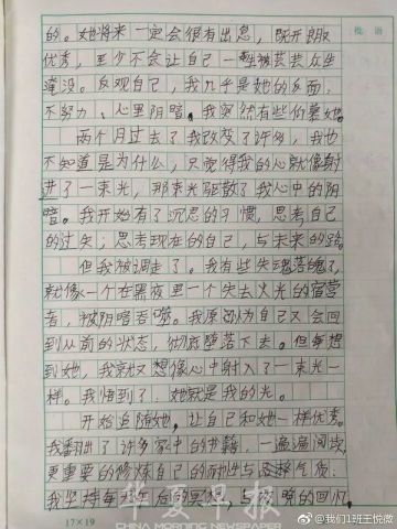 宁波华天小学王老师在微博“我们1班王悦微”晒出这篇作文后,立即引爆热点。