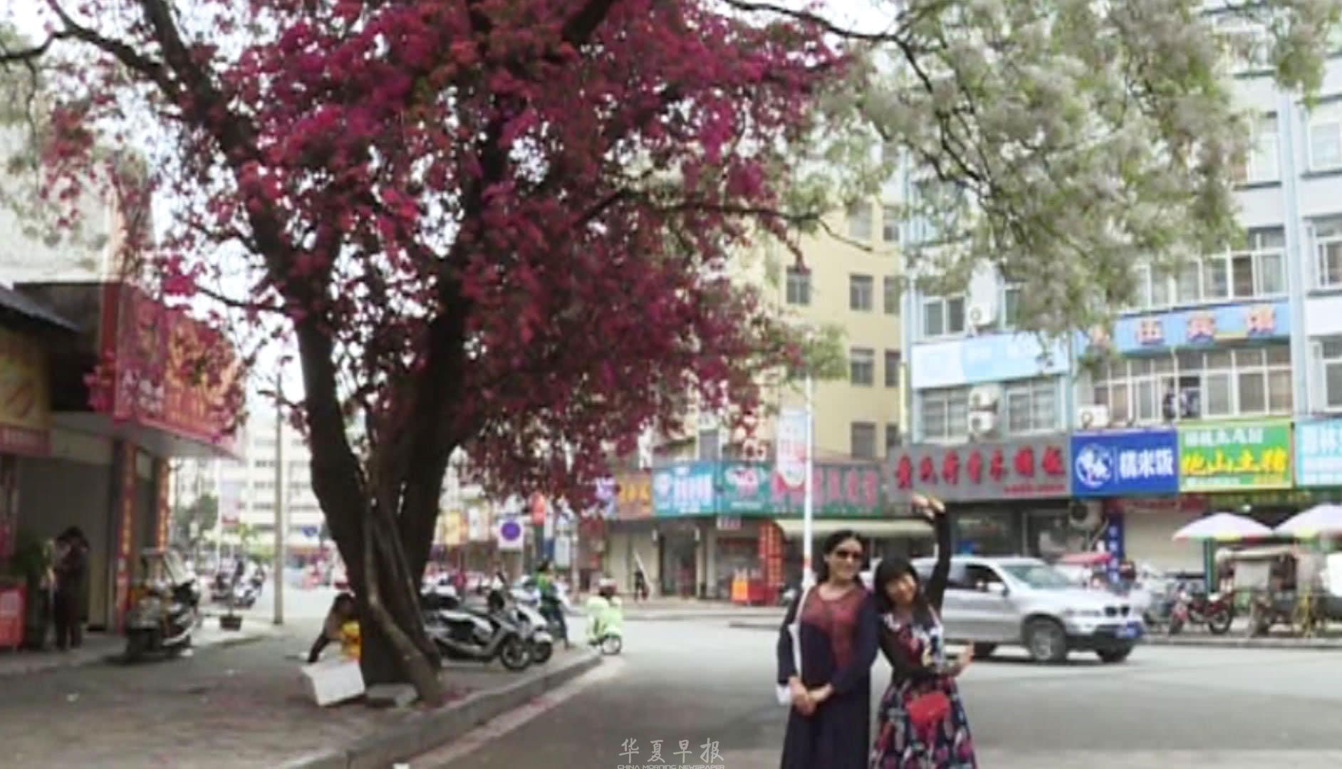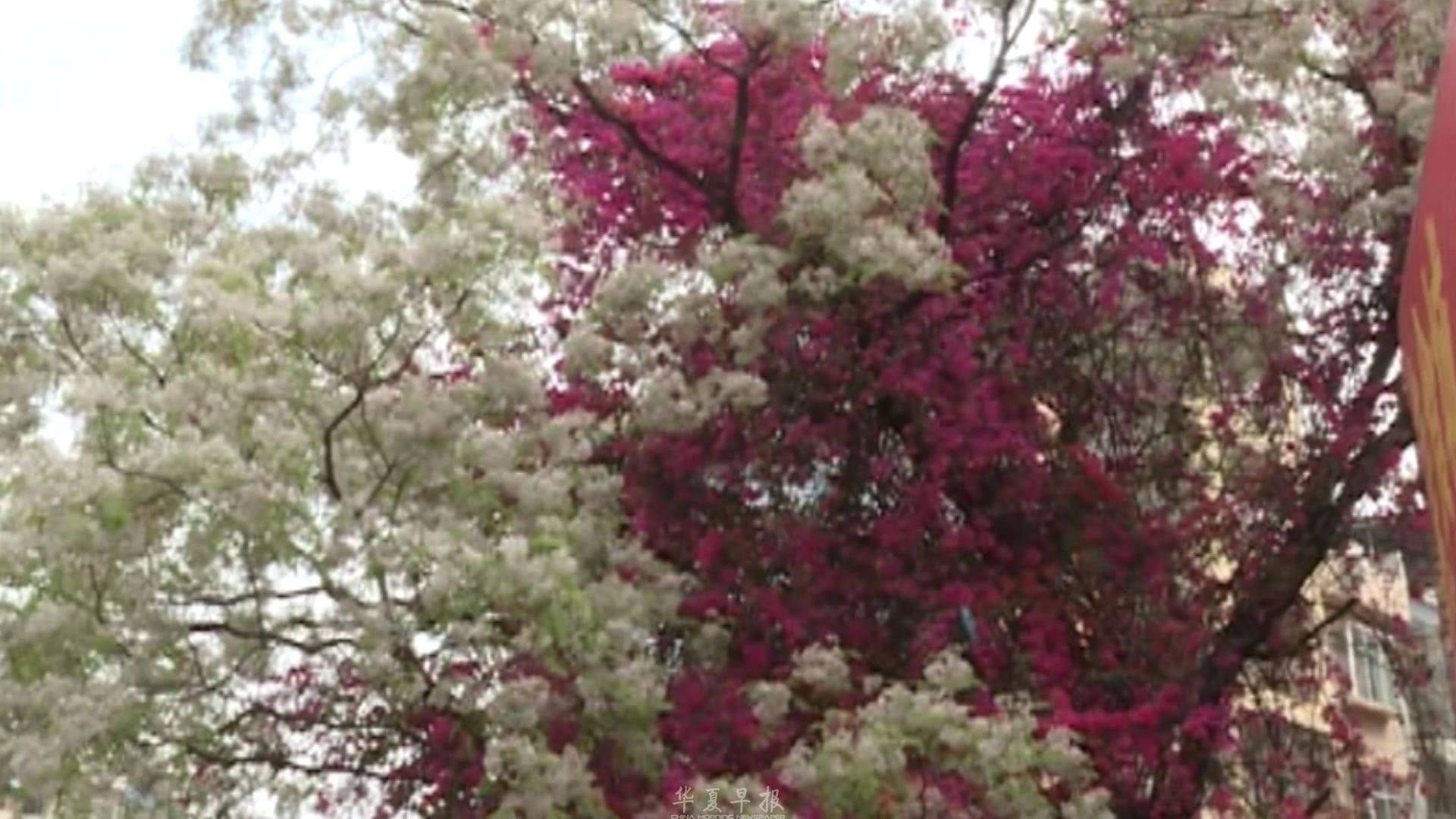 据了解,合抱相生的两棵树已经有18年的树龄,每年都红白配合开花。近年来,该县园林养护工人对其进行了精心养护。据了解,今年的气候相对比较暖,所以今年花更茂盛,花期更长。