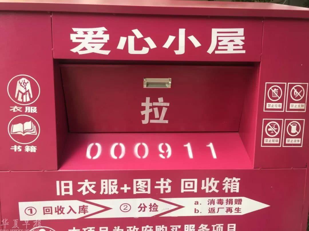 去年6月份开始,广西心香公益社工服务中心陆续在南宁各城区投放爱心小屋,这种旧衣回收箱全身为粉红色,有1.75米高,占地约一平方米。目前在南宁市已经投放了超过1000个,每天回收大量的旧衣物。