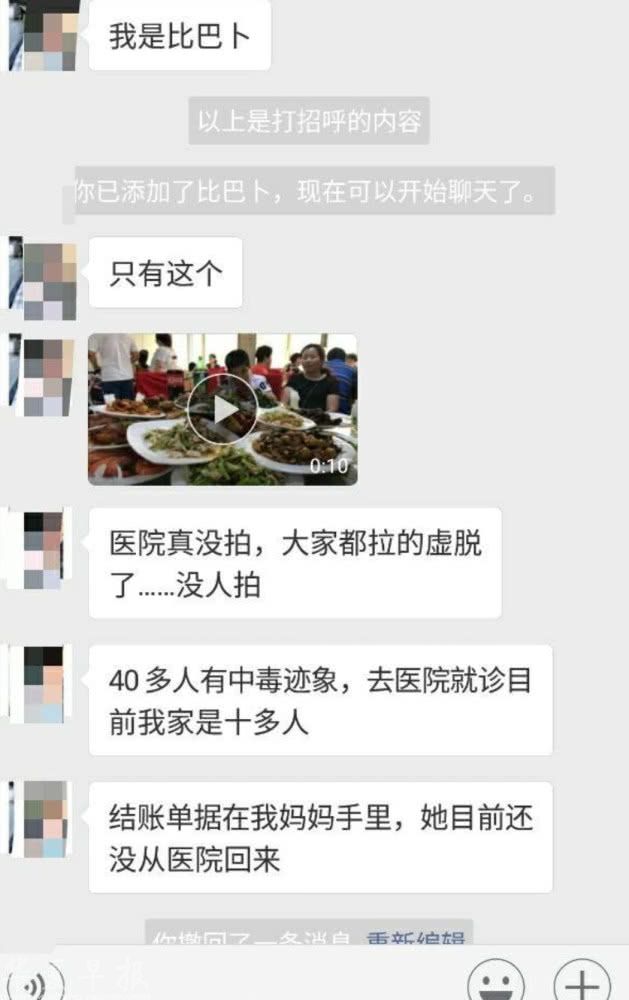 据网友表示,自己一家人是中午在新城饭店就餐的,当天晚上十点开始,前去就餐的15人就出现了不同程度的腹泻,有四人腹泻严重去了医院,经过大夫诊断是食物中毒引发的急性肠炎。网友称自己母亲一夜没睡,上吐下泻都拉脱水了!后来,网友听说,昨天跟他们家同一时间给孩子办升学宴一家人也出现了腹泻症状,有6、7个人进了医院,其中还有一个人已经拉的神志不清了。
