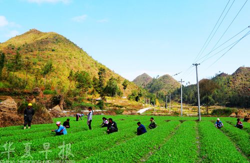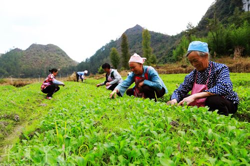 50多岁的村民王九妹正在自家的菜地里除草,看着长势良好地蔬菜,脸上掩饰不住地笑容。她告诉记者,以前她和丈夫在广东种了3年的蔬菜,现在在家带孙孙,听到要发展蔬菜种植,而且收购还有保障,便种了15亩的菜地,现在已经割了2000斤,卖了6000元。