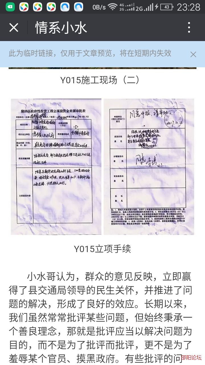 为了反映本水、网、村乡道(Y015)的规划问题,虽然得到了上级领导的重视!