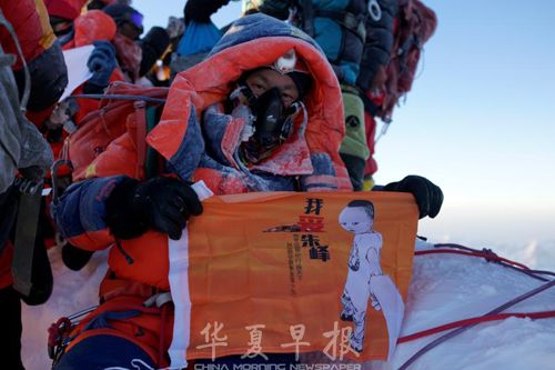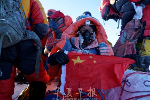 “当我在珠穆朗玛的顶峰展开五星红旗时,看着太阳一点一点从千山万壑间慢慢升起,心里如释重负,原来世界之巅是这个样子。”5月16日,朱虹飞终于登上了珠穆朗玛峰峰顶,站在了世界之巅。