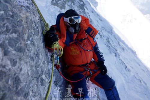朱虹飞在攀登珠峰。