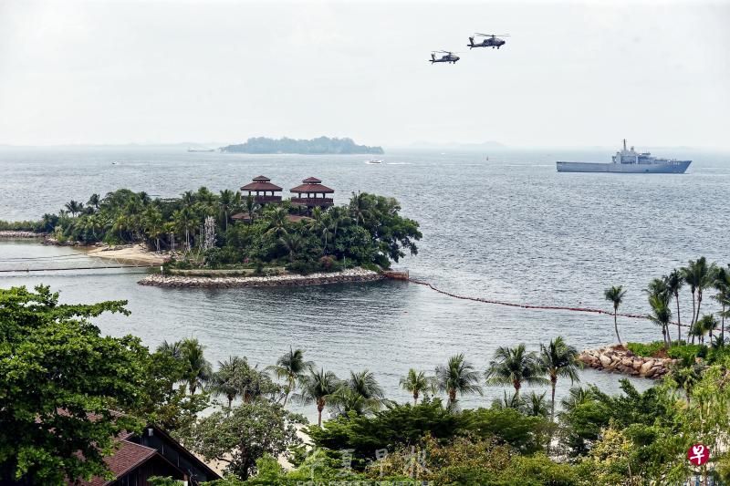 历史性的特金会今天在新加坡圣淘沙举行,新加坡武装部队海军和空军加紧保安巡逻。(何家俊摄)