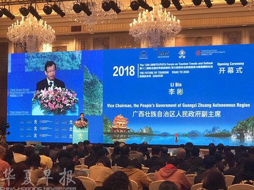 华夏早报广西桂林讯(特派记者 许林 刘大华 黄道华)10月26日,第十二届联合国世界旅游组织/亚太旅游协会旅游趋势与展望国际论坛在广西桂林市香格里拉大酒店举行。