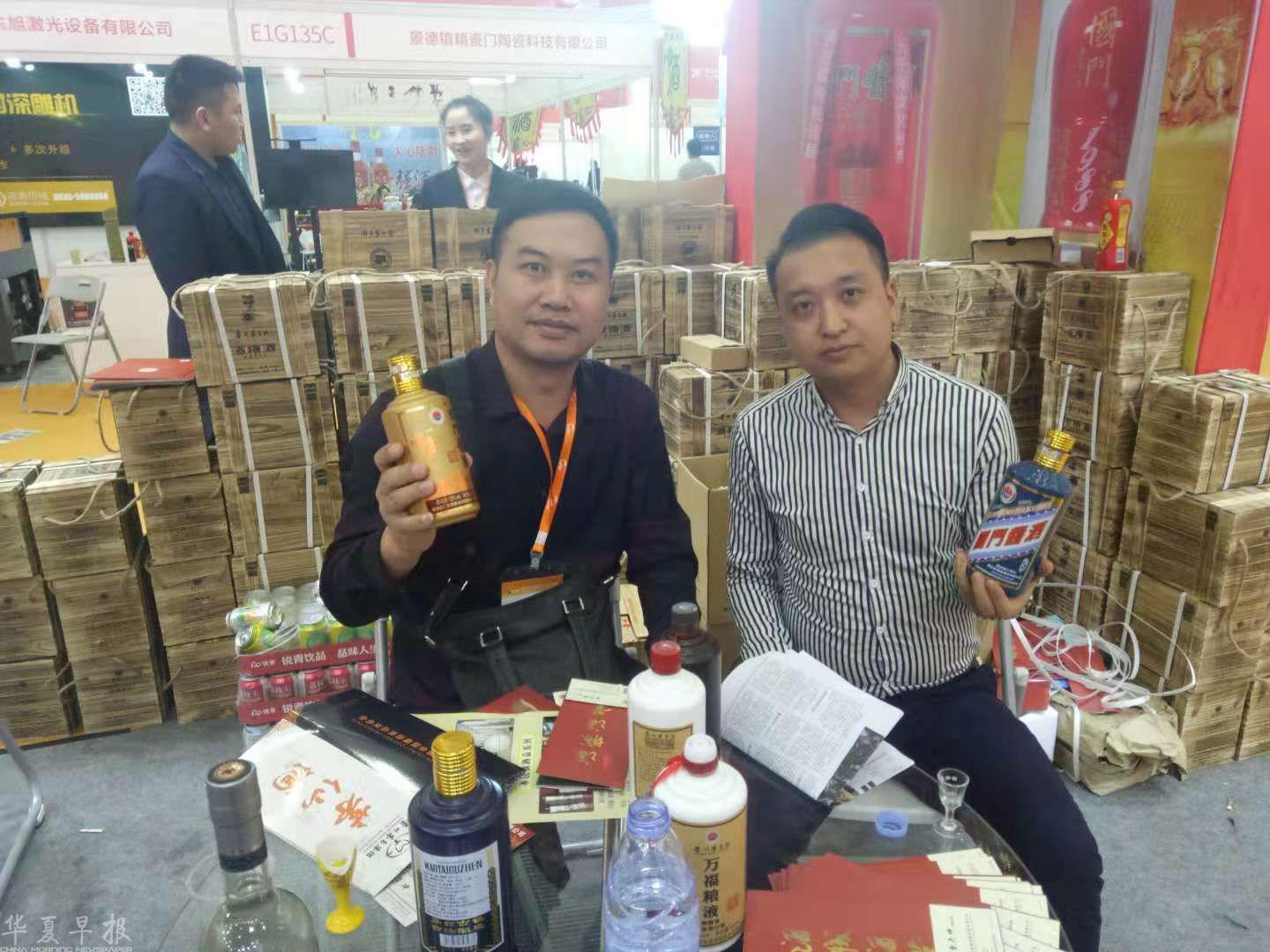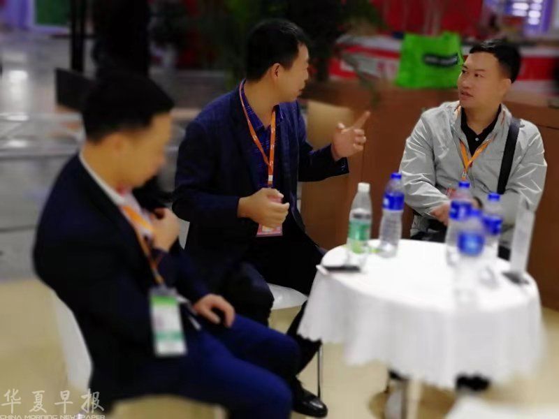 华夏早报特派记者娄义华(右)与某食品企业就品牌发展交换意见。