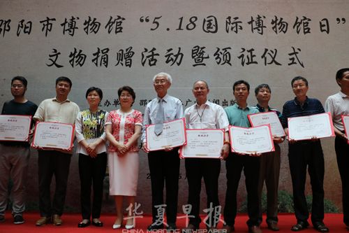 捐赠仪式上,邵阳市博物馆还为捐赠者颁发了收藏证书。同时,博物馆还从捐赠的文物中精选了150件,举行捐赠文物展,供市民参观。