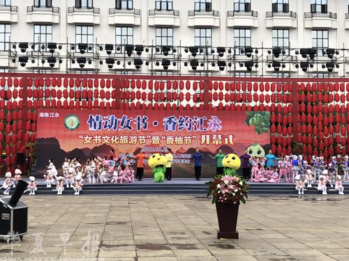 华夏早报讯(特派记者 卜运华 特约记者 钟吾军 彭泽民 通讯员 陈健林)秋风送爽,香柚飘香。10月20日,2018湖南永州(江永)“女书文化暨香柚文化旅游周”在江永县城凤凰广场举行开幕式。江永县委书记周立夫致欢迎词,永州市委常委、宣传部长贺辉出席活动并讲话。