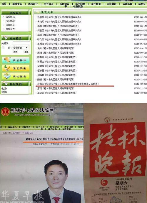 截至2019年2月16日,上述三名法院的名字和简介依然出现在七星区人民法院法官风采栏目中。