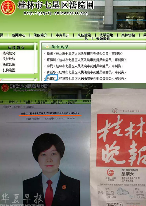 截至2019年2月16日,肖建红的简介和照片还在七星区人民法院官网正常显示。