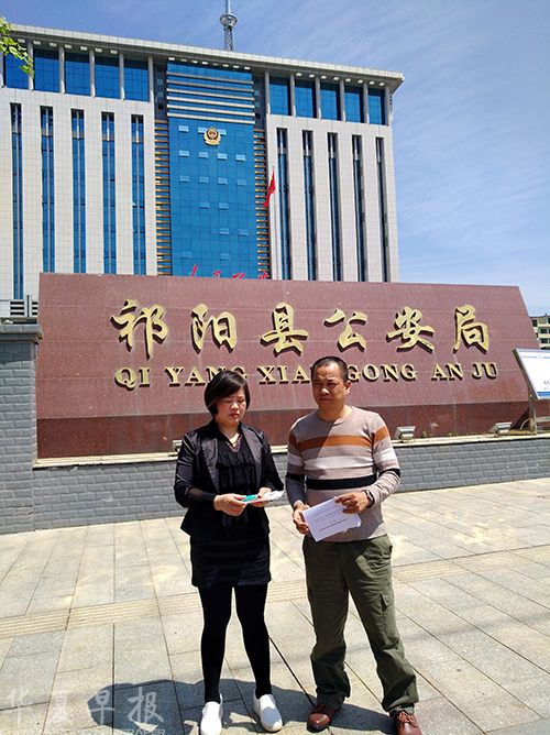 图为邓建强(右一)夫妇在祁阳县公安局门口。