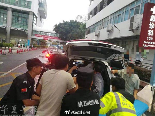 深圳交警南山大队铁骑队员一路开道护送病人到南山医院治疗 微博@深圳交警 图