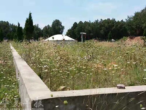 在墓地的一段矮墙上,“卖墓地”的字样清晰可鉴,后面还附有一个183开头的电话联系方式。