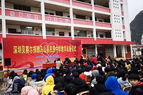华夏早报讯(首席记者 方智平 通讯员 陈仕优)“教育兴则国家兴,教育强则国家强”。1月15日,深圳市贝赛尔展示设备有限公司总经理陈首荣在给广西马山县民族中学和尚德小学,分别赠捐一套共价值120万元的“多功能云智慧课堂”教学设备。