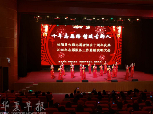 华夏早报讯(记者 许林) 1月12日下午,湖南省桂阳县古郡志愿者协会十周年庆典暨2018年志愿服务工作总结表彰大会,在县演艺中心一号会议厅顺利开幕,全体志愿者及家属、嘉宾迎来了这一具有纪念意义的时刻,县委常委、宣传部长邓艳红出席会议并发表重要讲话。