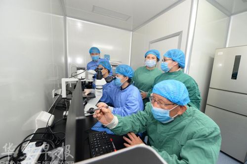 在长沙生殖医学医院院士专家工作站,刘以训院士(前)在带领团队开展科研。 余劭劼 摄